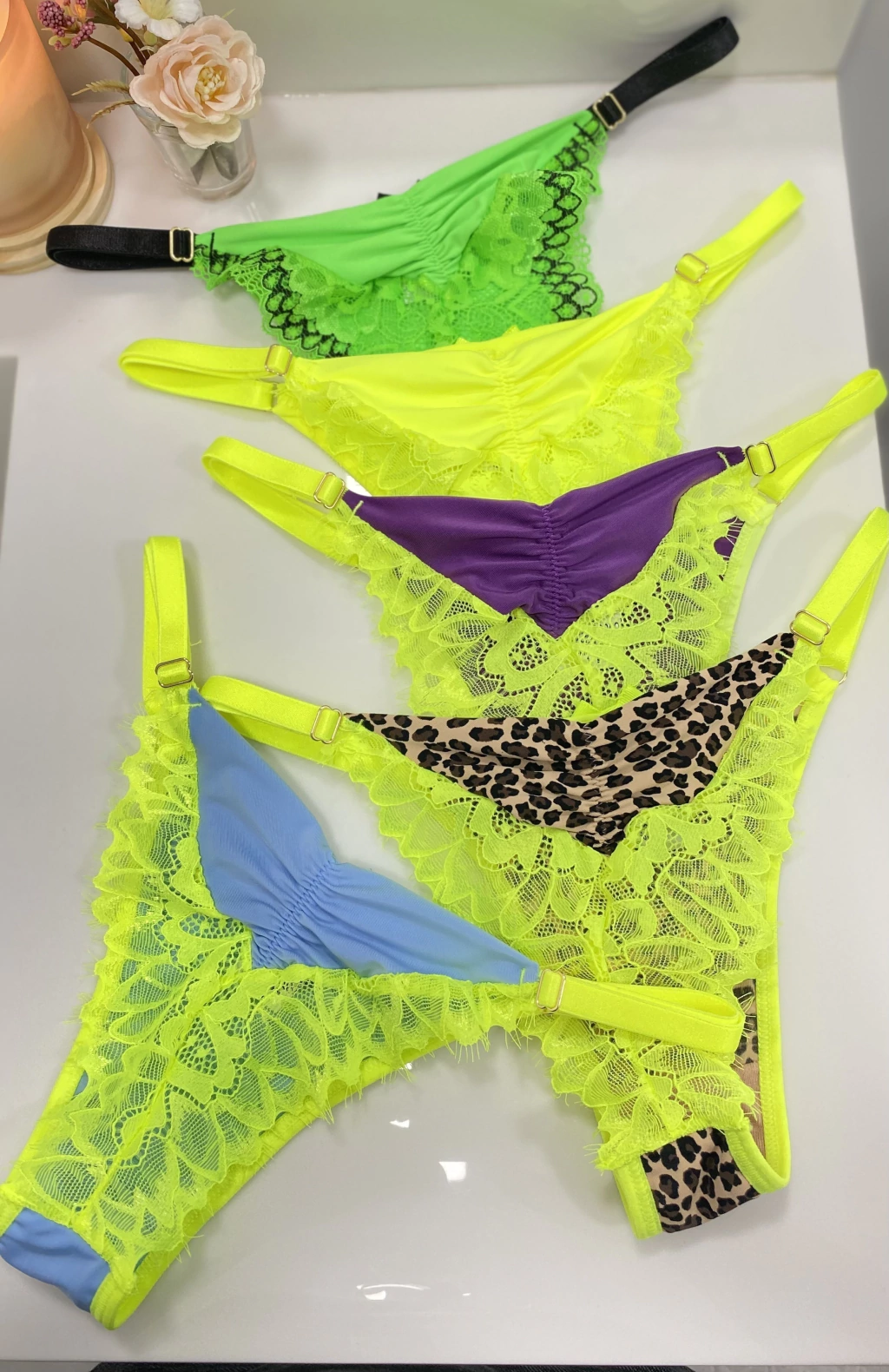 CALCINHAS FIO REGULAGEM CHANTILLY BICOLOR